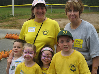 our return to Cape Cod, planned before the weather was known and the first without Laura. But between and among the mists, showers, and downpours of a weekend with back to back separate wet weather systems, we made the most of it and found our own bright spots. Like visiting with Ellen Hanson and family (Sean, Kathleen and Heather; triplets, and older brother Scott) at the Alex's Lemonade Stand held as part of their school's fall festival. (Please click here for a very nice article about Sean, Ellen and family and Alex's Lemonade Stand.) Laura and all of us visited together on the Cape in June 2006. The hydrangea that do so well on Cape Cod were coming into full bloom then. Now in September, they have dried and reached their purplish autumnal tints.